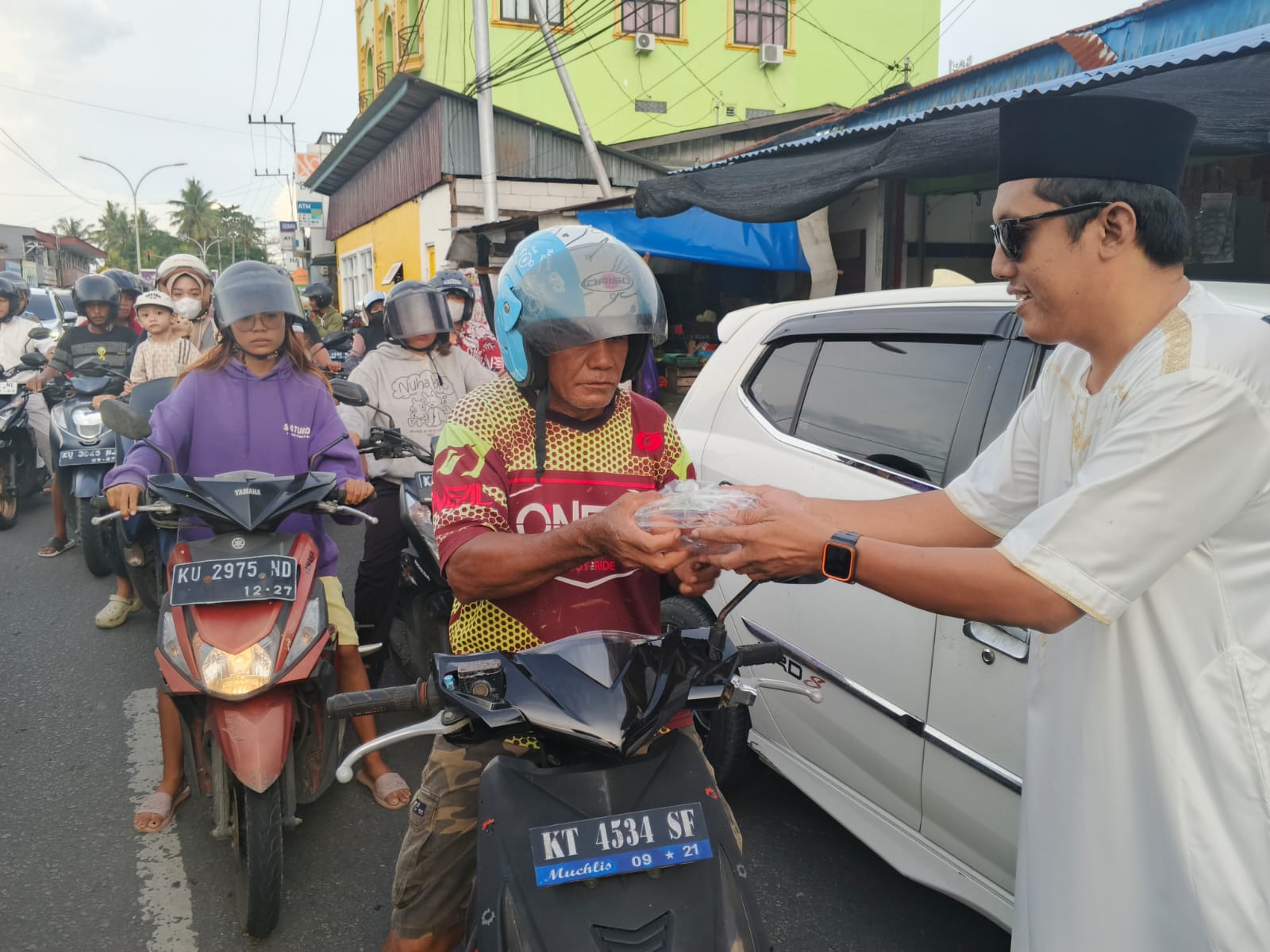 Sebanyak 300 paket bingkisan yang mereka sediakan, habis terbagi untuk masyarakat yang kebetulan melintasi jalan tempat aksi sosial saat itu digelar, di Jl. Bhayangkara, sekitar Pk. 17.00 pada Sabtu (7/3/2026).